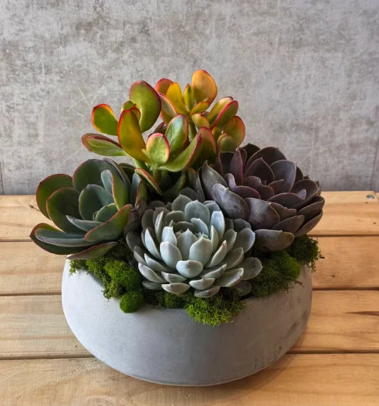 A set of four succulents arranged in a sturdy concrete pot, offering a modern and minimalist look. Ideal for adding greenery to any space.